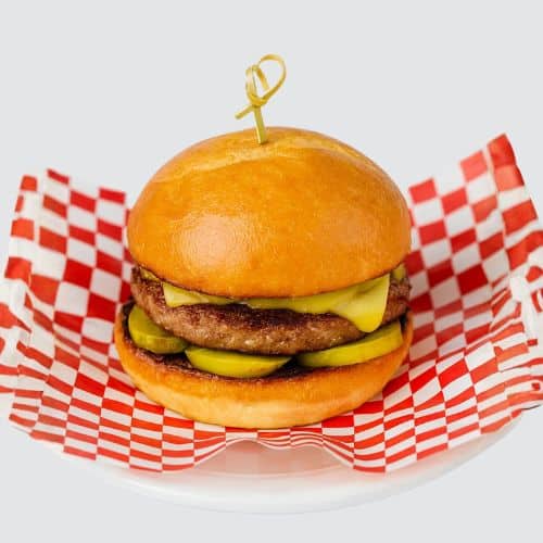 Single Beef Patty, Cheese, Pickles, Mustard and Tomato Sauce