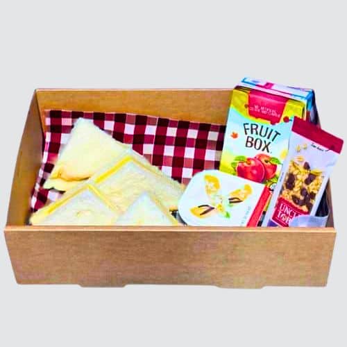 Your choice of Cheese, Ham and Cheese, Jam or Vegemite Sandwich with Yoghurt Cup and Muesli Bar. Add Pop Top to your Snack Box for $2.50.